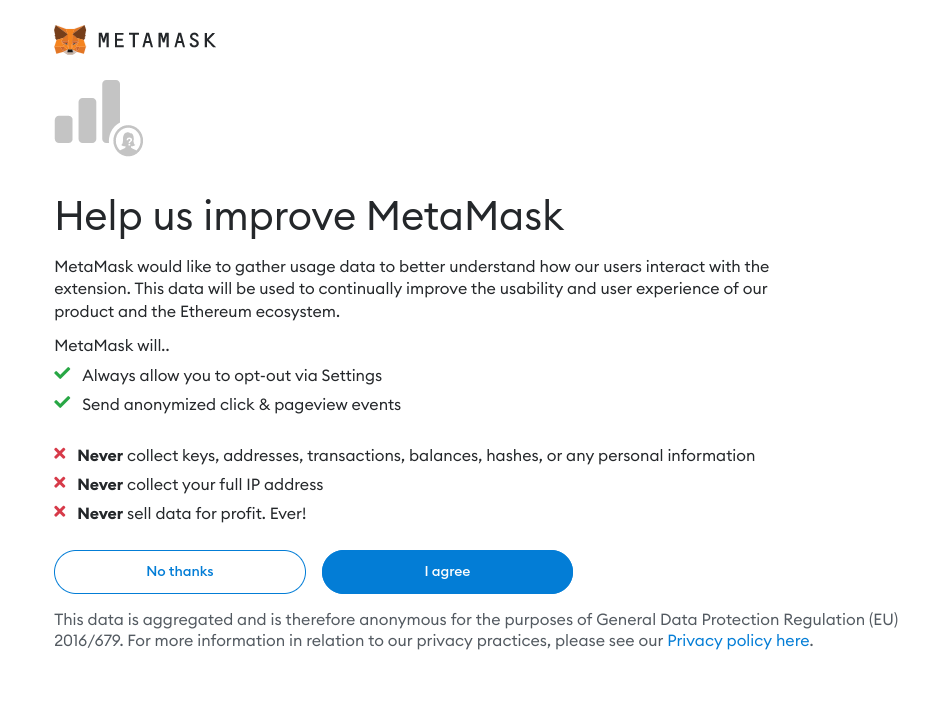 Before creating a wallet, we need to secure MetaMask with a password. Coose one that is more than 8 characters long. For more info on Metamask & passwords, read this help article
