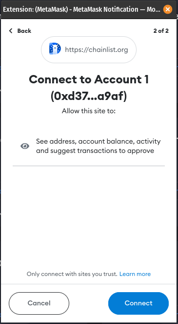 Click 'Connect wallet' to connect - this will open up your MetaMask and ask you to confirm that you're happy for the site to read your account (it does not give any other 'Signer' permissions).